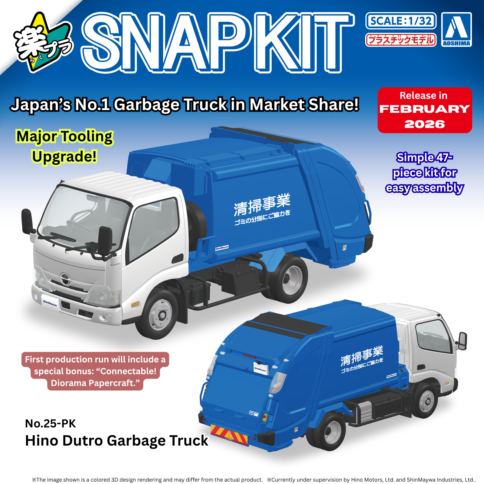 Aoshima 1/32 Snap Kit #25-PK Hino Dutro Garbage Truck