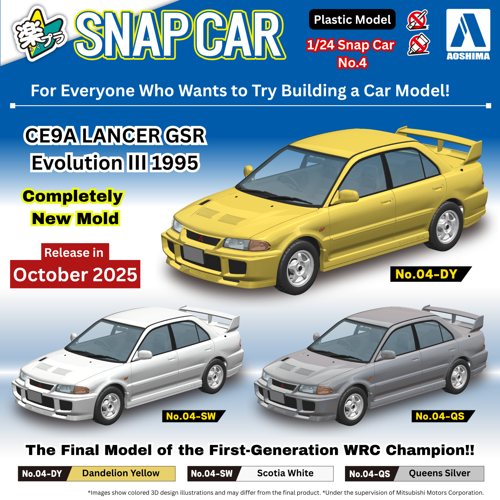 Aoshima 1/24 Snap Car #04-QS CE9A LANCER GSR EvolutionⅢ 1995 Queens Silver