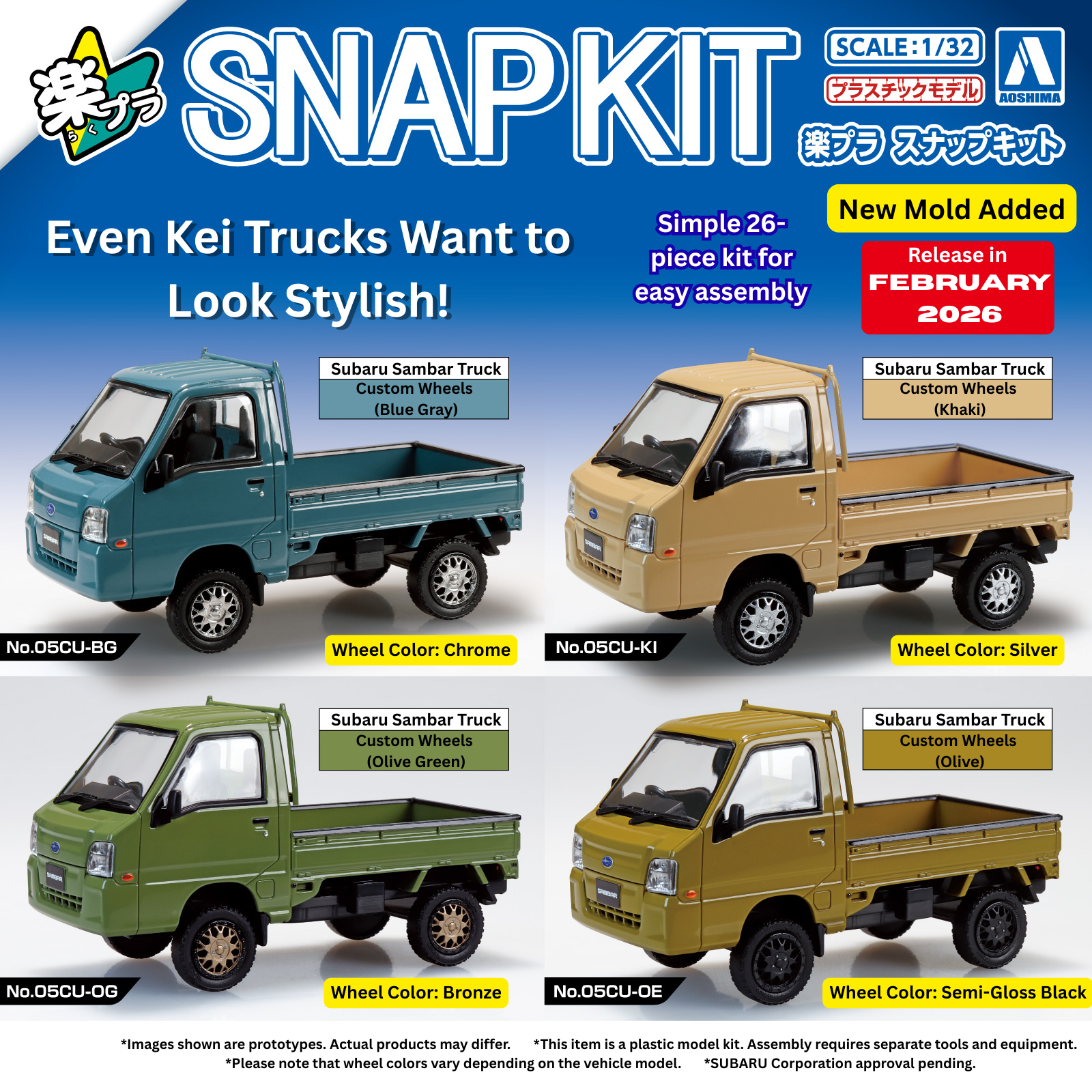 Aoshima 1/32 SNAP KIT #05CU-BG Subaru Sambar Truck Custom Wheels (Blue Gray) – Truck kits