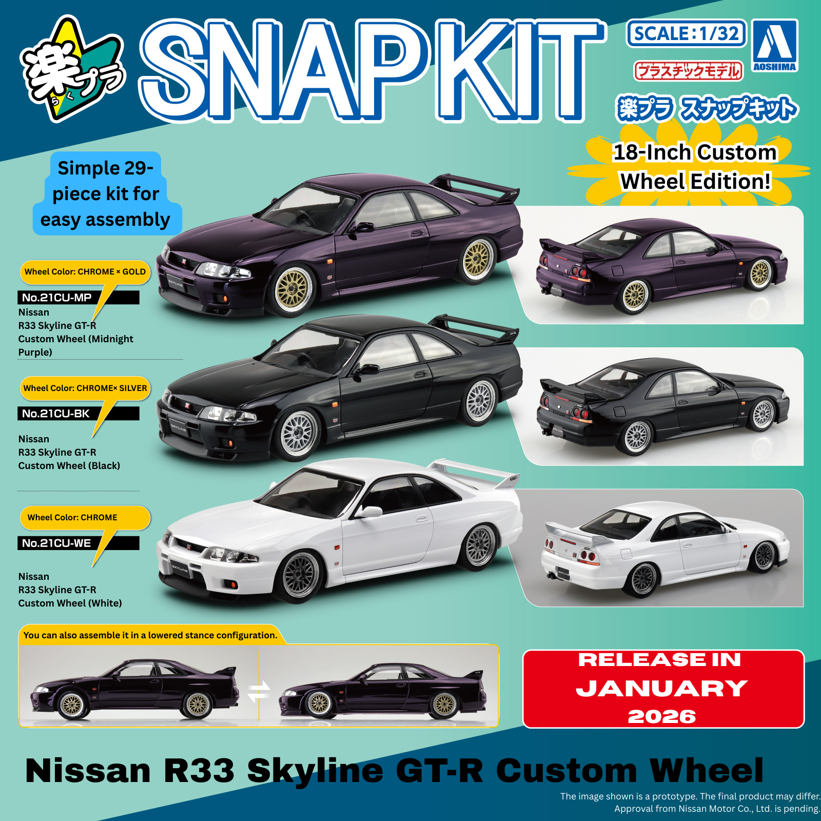 Aoshima 1/32 SNAP KIT #21CU-BK Nissan R33 Skyline GT-R Custom Wheel (Black)